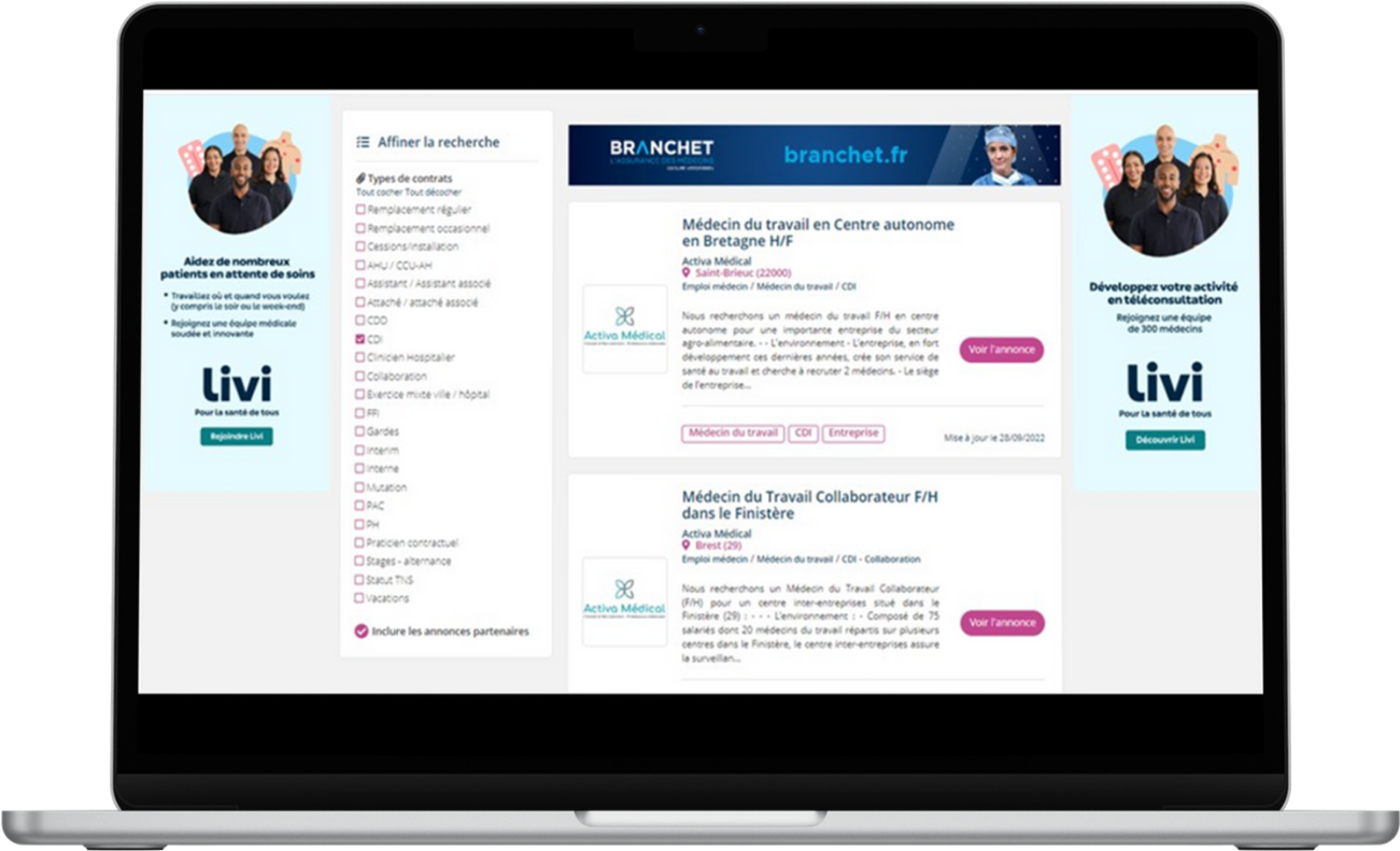 Gagnez en efficacité grâce à nous outils marketing conçus pour maximiser la visibilité de vos annonces sur et au delà d'annonces-médicales.com.